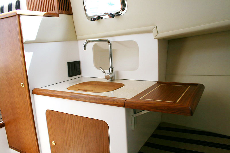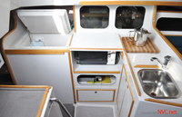 キッチン、エアコン、トイレも備えているので、セーリングやクルージングだけでなく、