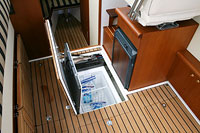 | デッキ艤装 | スライダー式メインセール ジブファーラー(取り外し可能) ウッドコックピットフロア ビルジポンプ コンパス スイミングラダー <ウィンチ> (マニューバリング)LEWMAR40×2(プライマリー)LEWMAR46×2 LEWMAR40×2 |